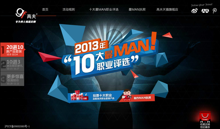 市場上唯一“專為男士高級定制”的個人護理品牌——高夫,在網絡打造“最MAN十大男性職業(yè)”事件,吸引消費者關注并積極參與到活動中,在網絡掀起最MAN職業(yè)的話題和熱潮。