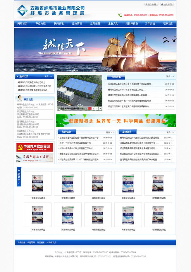 多年來,蚌埠鹽業(yè)認(rèn)真貫徹落實(shí)國家《食鹽專營辦法》、《食鹽加碘消除碘缺乏危害管理?xiàng)l例》,始終以食鹽市場安全穩(wěn)定為天職,忠實(shí)履職,恪盡職守。一方面對全市鹽業(yè)市場進(jìn)行鹽政監(jiān)管,嚴(yán)厲打擊鹽業(yè)違法犯罪,全力維護(hù)食鹽市場安全穩(wěn)定;另一方面負(fù)責(zé)組織開展食鹽專營,致力為消費(fèi)者提供安全、優(yōu)質(zhì)、放心的加碘食鹽,確保全市371萬人口的食鹽供應(yīng)。與此同時(shí),蚌埠鹽業(yè)主動(dòng)適應(yīng)市場需要,積極拓展非鹽經(jīng)營,在發(fā)展的道路上不斷深化改革,自主創(chuàng)新,產(chǎn)業(yè)結(jié)構(gòu)轉(zhuǎn)型邁出堅(jiān)實(shí)步伐,全區(qū)總資產(chǎn)已近8000萬元,現(xiàn)有經(jīng)營倉儲面積約1.5萬平米,在建倉庫1萬余平米。2014年實(shí)現(xiàn)銷售收入14762.69萬元,其中食鹽銷售4967.40萬元,非鹽銷售9795.20萬元、實(shí)現(xiàn)利稅1124.52萬元,經(jīng)濟(jì)社會(huì)效益居全省同行領(lǐng)先。先后榮獲全省鹽業(yè)系統(tǒng)先進(jìn)單位五連冠、安徽省勞動(dòng)保障誠信示范企業(yè)、安徽省衛(wèi)生先進(jìn)單位、檔案管理考核安徽省一級單位、蚌埠市A級納稅信用單位、蚌埠市第十四屆文明單位等多項(xiàng)榮譽(yù)稱號。